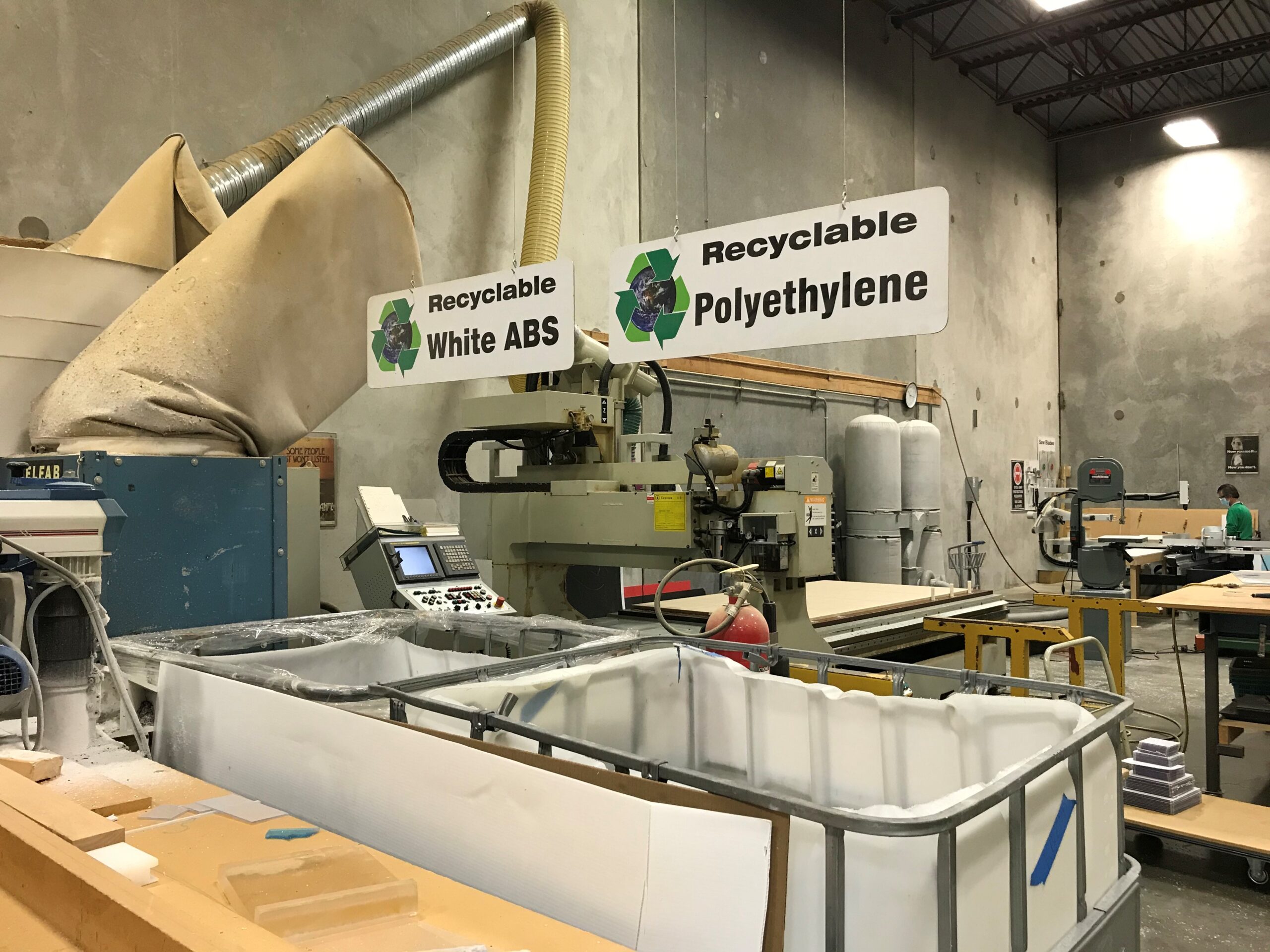 We collect and separate more than 97% of our scrap plastic for recycling. Sending it back to the manufacturer for regrinding and recycling where they will turn it into new plastic sheets. In addition, we collect all our poly masking and paper products for recycling. When asked, we will recycle customers’ left over plastic and outdated products. We reuse packaging when possible and recycle if it is not reusable. We also donate some of our offcut materials to local high schools for students to use in their shop programs.