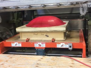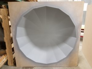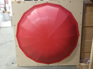Used in a lobby as architectural design elements, these umbrellas make this space look amazing. These acrylic umbrellas were also formed with the colored vinyl already mounted. So, we printed the colours on clear vinyl and applied them to the acrylic before the forming process. Once they are formed, we trim them to shape and pack them for shipping. See below for more images including the mold for these acrylic umbrellas. Have a project? Contact us here.